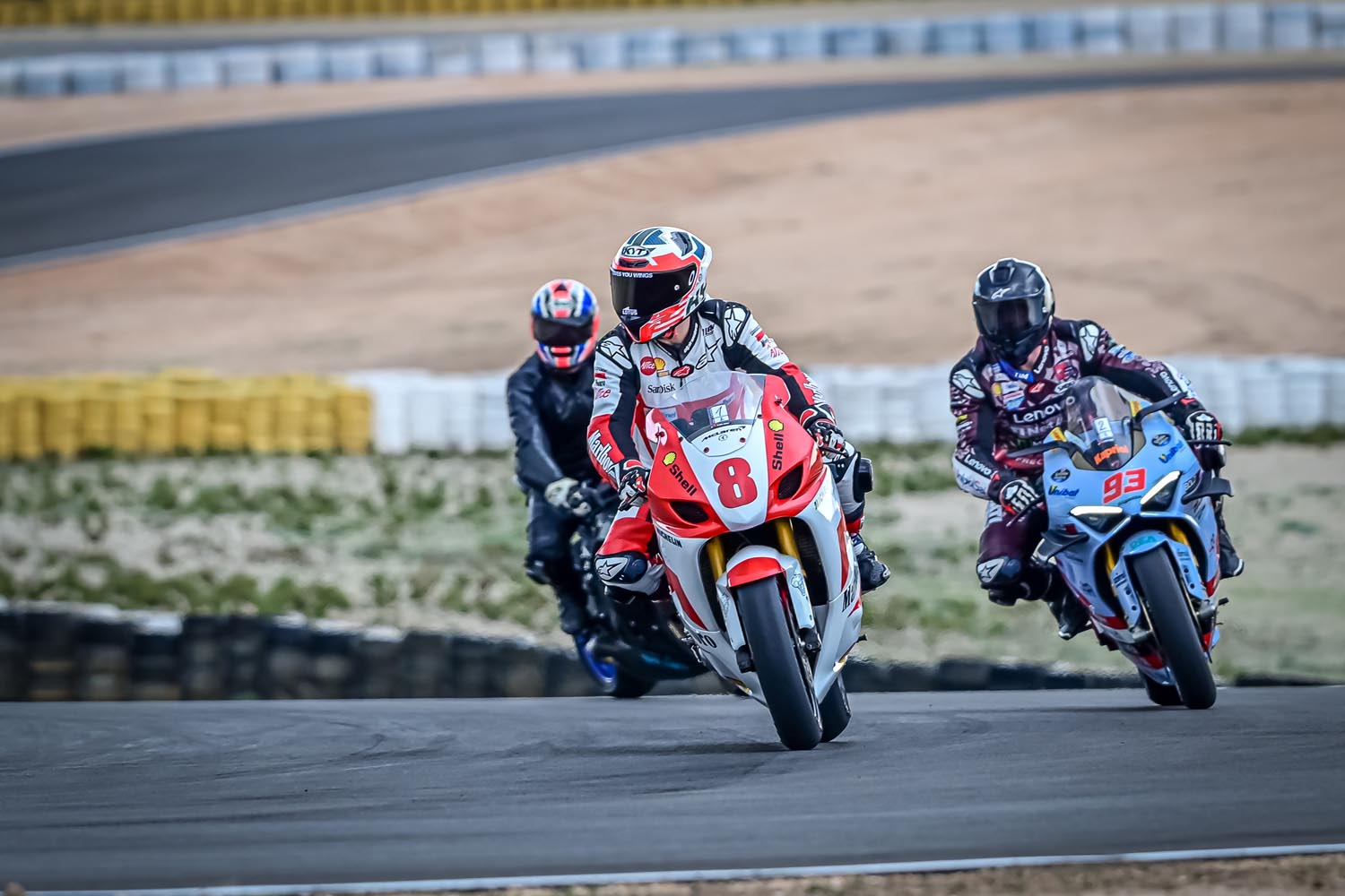 En estas tandas, el trabajo de los fotógrafos de Sensaphoto fue tan intenso como el de los pilotos. Captar una moto en el Circuito de Almería II es un reto visual: la luz del desierto, con sus tonos ocres y dorados, ofrece un contraste único contra el negro profundo del asfalto nuevo.